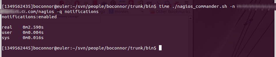 The little known Nagios front-end API, which can be accessed via curl, is actually quite powerful if only it were more accessible. This project aims to wrap this functionality around a simple command line interface to query and command a Nagios instance as one would using the GUI. Nearly all basic functions of Nagios are working out of the box. Please comment and report bugs here or at github as they arise (and they always do ;).