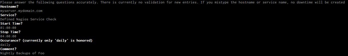 - Occurance: currently I only support daily downtimes as that was the itch I had. I plan on expanding this later. Just enter 'daily' here.