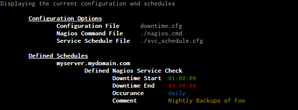 -c, --config c Config file to use. Defaults /etc/nagios/downtime.cfg