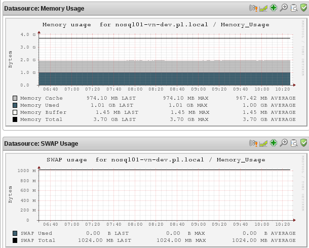 echo "Memory: WARNING Total: $memTotal_m MB - Used: $memUsed_m MB - $memUsedPrc% used!|Total=$memTotal_b;;;Used=$memUsed_b;;;Cache=$memCache_b;;;Buffer=$memBuffer_b;;;"