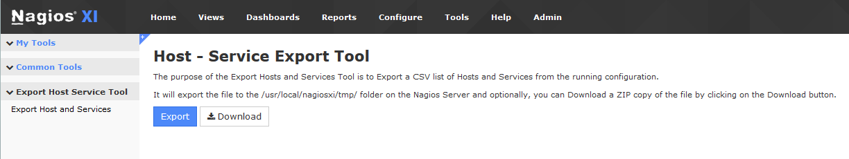 It will export the file to the /usr/local/nagiosxi/tmp/ folder on the Nagios Server and optionally, you can Download a ZIP copy of the file by clicking on the Download button.